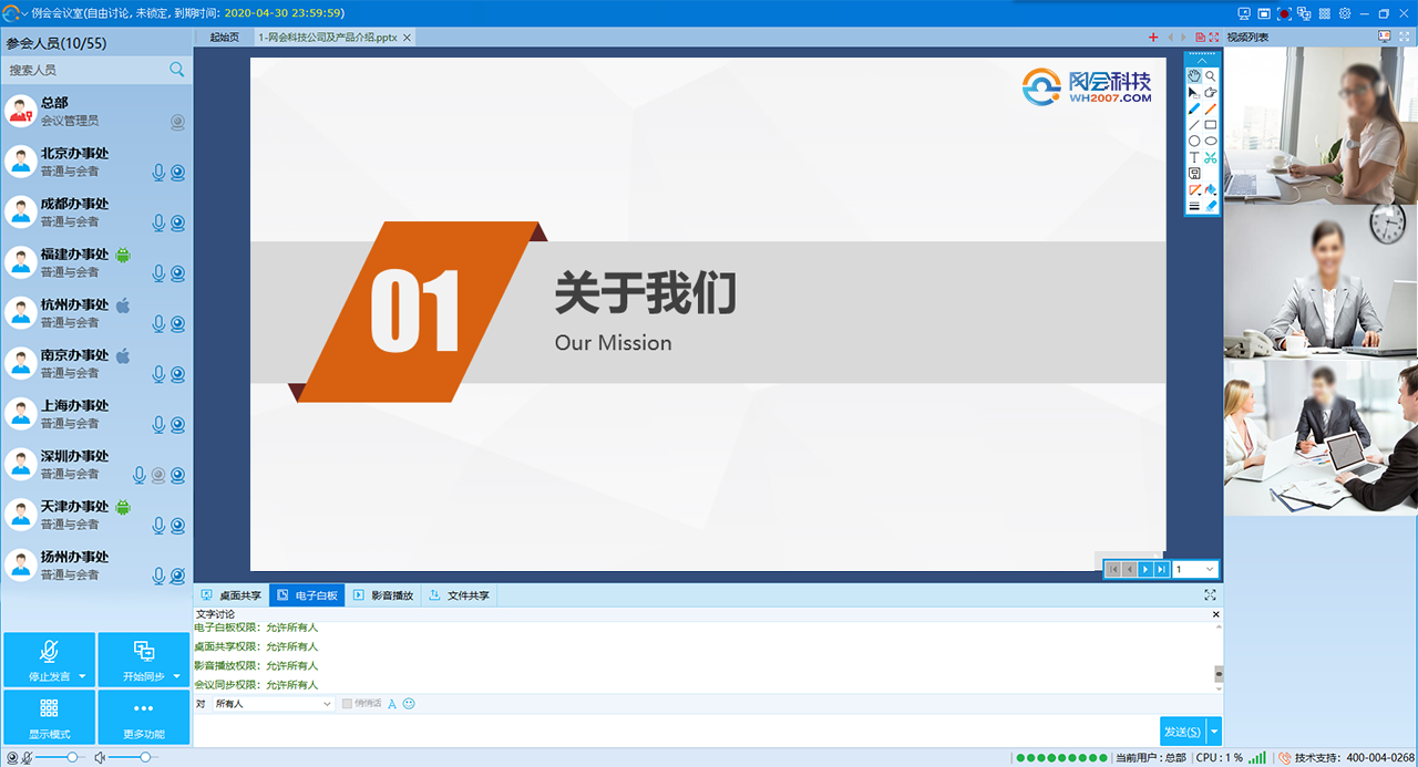 網(wǎng)會(huì)科技是中國(guó)領(lǐng)先的遠(yuǎn)程視頻會(huì)議軟件以及視頻會(huì)議系統(tǒng)、網(wǎng)絡(luò)視頻會(huì)議全面應(yīng)用解決方案的供應(yīng)商.產(chǎn)品涵蓋軟硬件視頻會(huì)議系統(tǒng)、視頻智能錄播系統(tǒng)等 請(qǐng)撥400-004-0268。